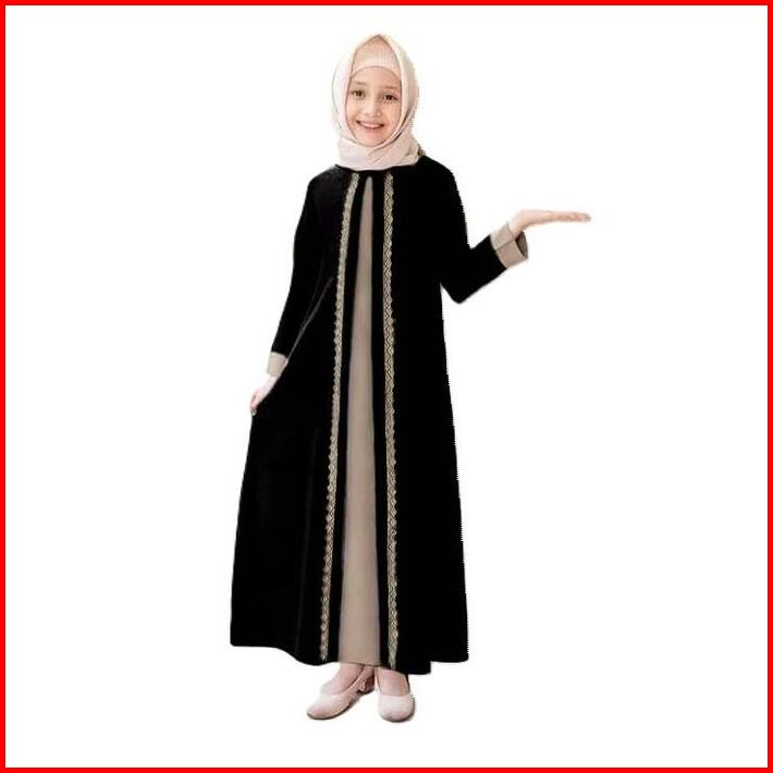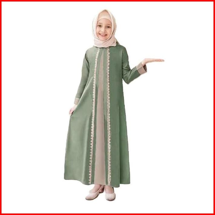 Gamis Anak Perempuan Remaja Abaya Terbaru Usia 6-16 Tahun Bahan Crinkle Airflow Kombinasi Krem Renda Baju Cantik Dress M