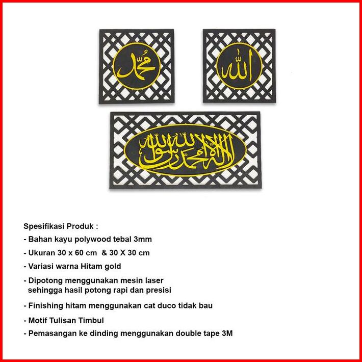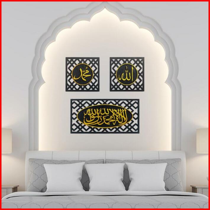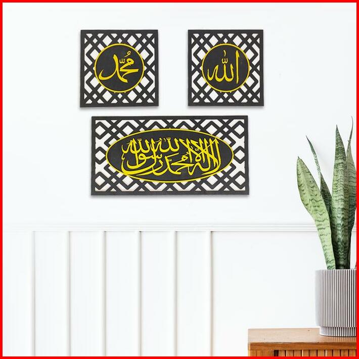 Hiasan Dinding Lafadz Allah Muhammad Dan Kaligrafi Laillahaillah Kayu 1set Isi 3pcs Ctkgg02
