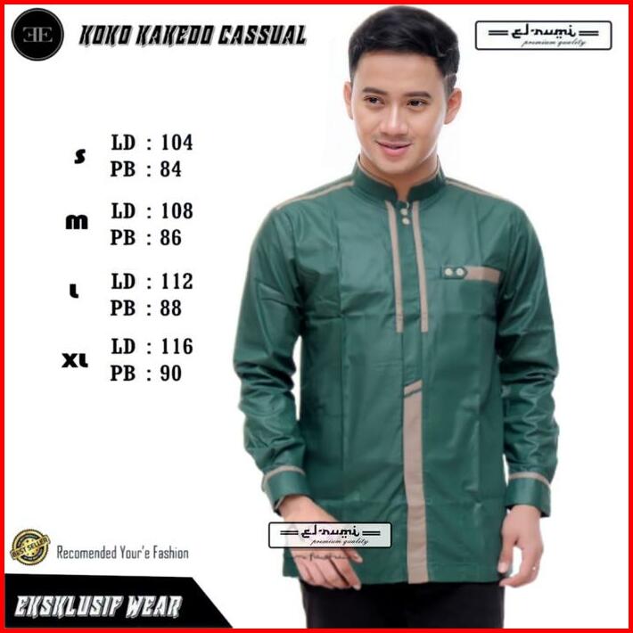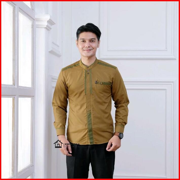 Baju Koko Khaatulistiwa Kemeja Koko Pria Lengan Panjang Bahan Katun Toyobo Grade A Kualitas Import Warna Olive Coksu Nav