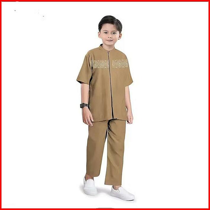 Setelan Baju Muslim Anak Laki-laki Setelan Koko Anak Laki-laki Terbaru Dan Terviral Usia 2-11 Tahun Celana Katun Peci Tu