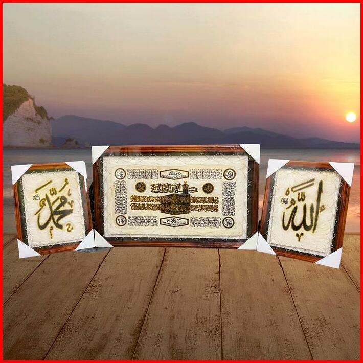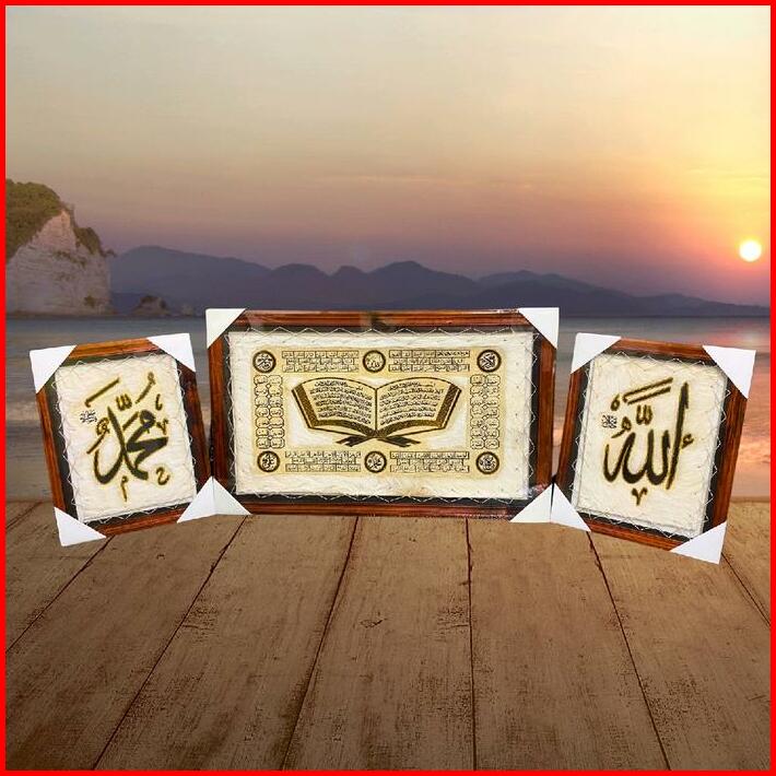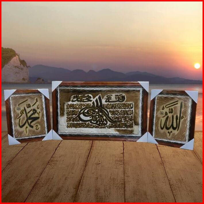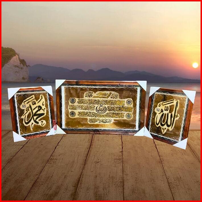 Paket Kaligrafi Jumbo 80x50 Isi 3 Ada Tasbih Mininya Hiasan Dinding Ayat Kursi Besar Bingkai Kayu Kali Graf Kaligrafi Hi