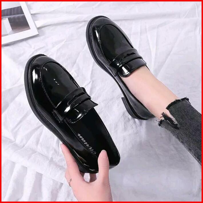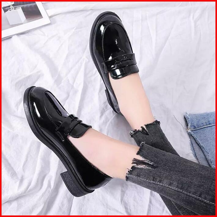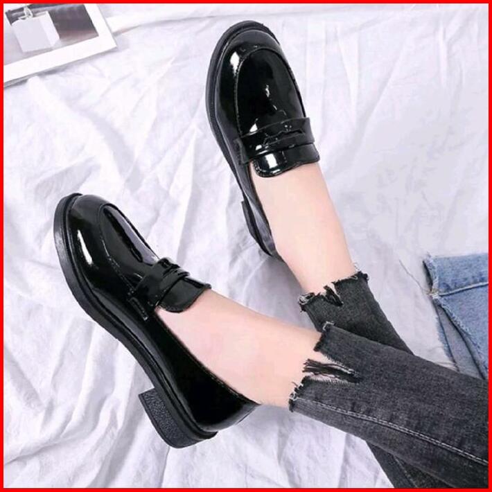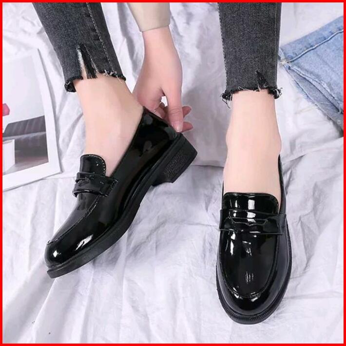 Sepatu Wanita Oxford Bahan Kulit Sintetis Docmart Korea Style Terbaru Tren 2022 Dokmar Sabina Kerja Shoes Hitam Flat Kas