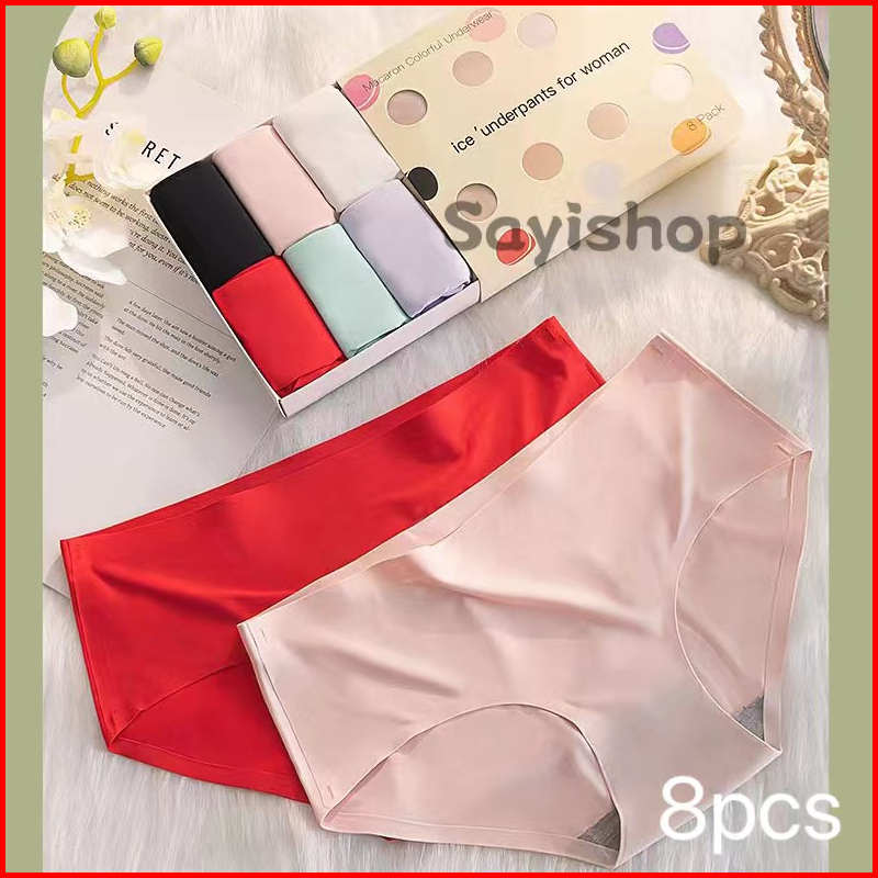 Sayishop Set Kotak 8pcs Dalam Seamless Tanpa Jahitan Anti Nyeplak Fashion Es Sutra Cd Wanita