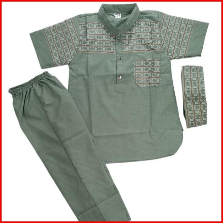 Baju Koko Anak Laki Usia 4-12 Tahun Bahan Katun Madinah Motif Terbaru Bordir Setelan Muslim Nyaman Celana Panjang Peci T