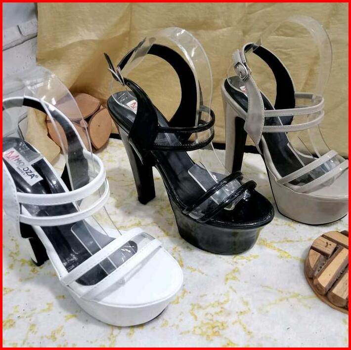 Moozashoes Sepatu Sendal High Heels Pesta Wanita 15 Cm Putih Hitam Mocca