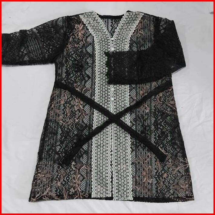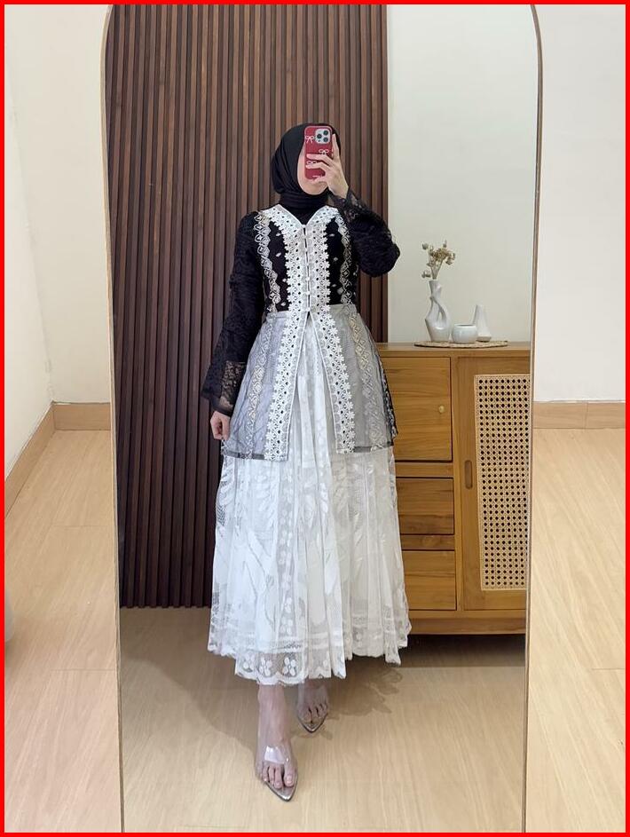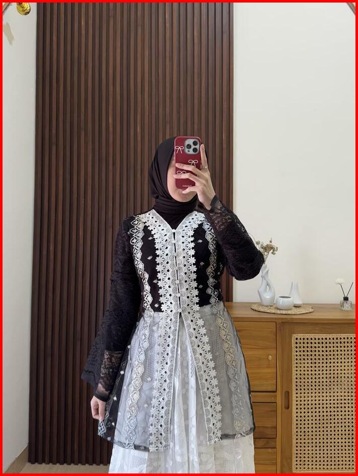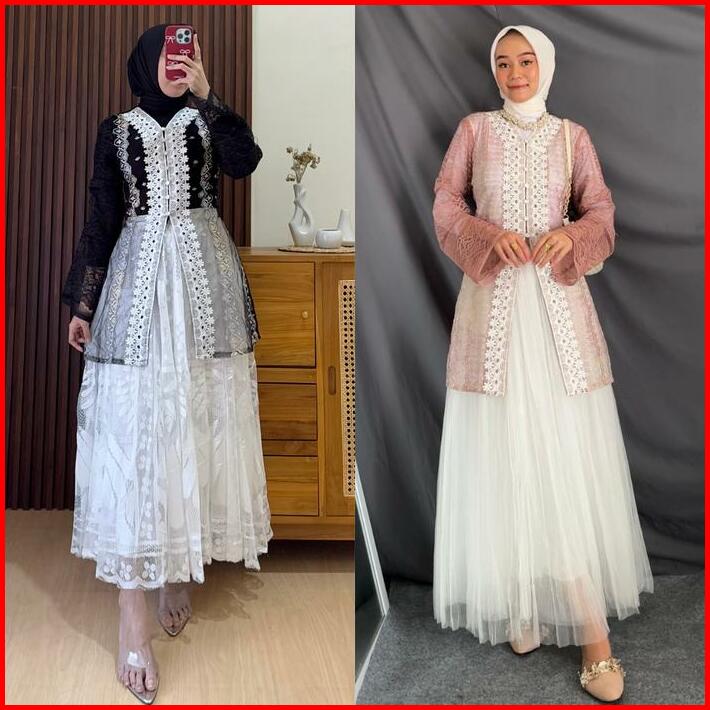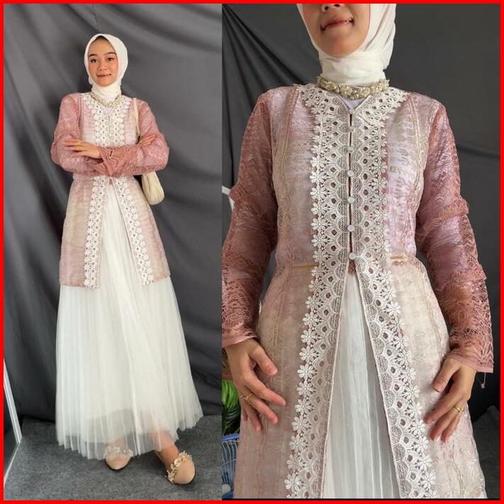 Enzy Outer Wanita Kekinian Tulle Gardenia Warna Mix Renda Full Chantily Halus Setelan Inner Outer Kebaya Wisuda Modern O
