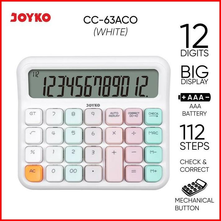 Calculator Kalkulator Joyko Cc-63aco 12 Digits Check Correct