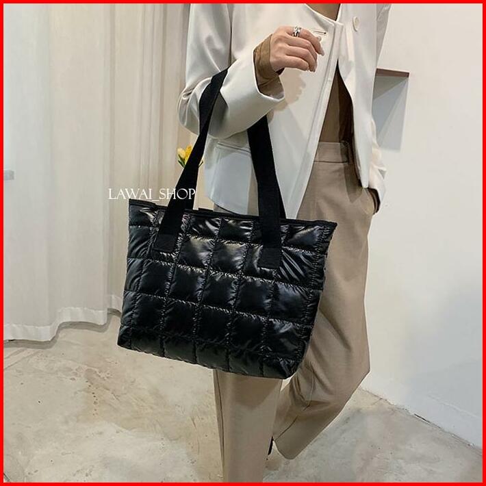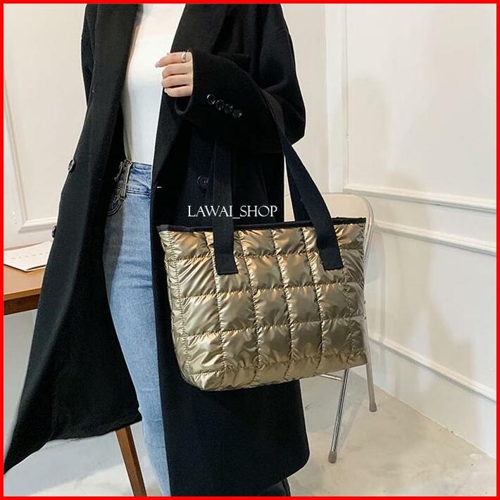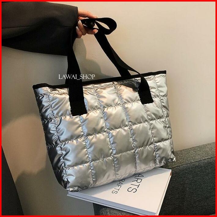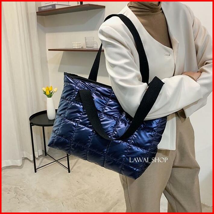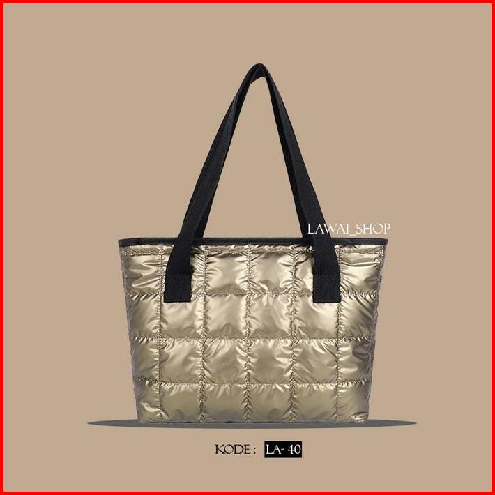 Tas Puffy Tote Bag Resleting Muat Laptop Tas Kuliah Kerja Totebag Pillow La-40 Totebag