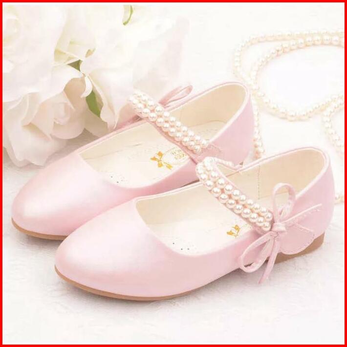 Sepatu Anak Perempuan Flat Shoes Terbaru 2024 Sepatu Anak Perempuan Model Balet Tali Mutiara Pita Pinggir Fashion