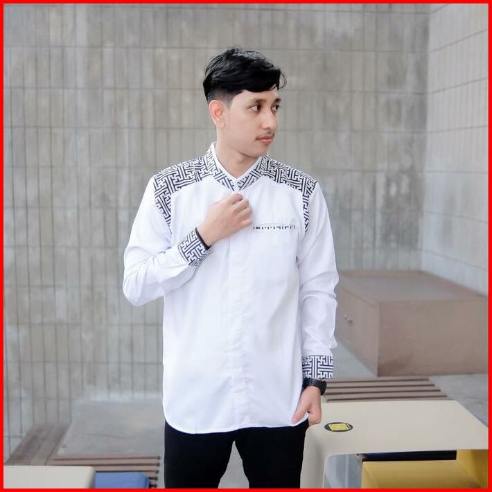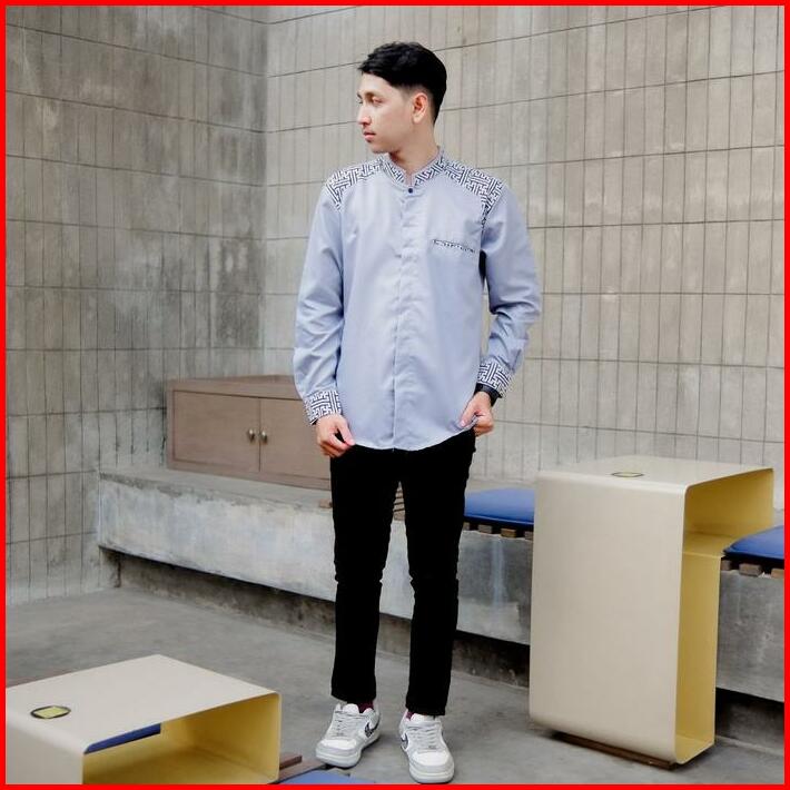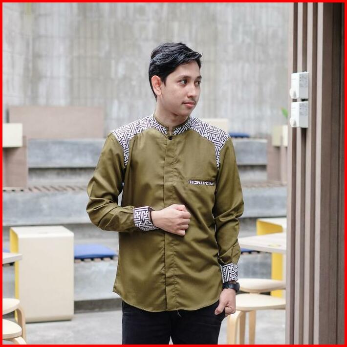 Baju Koko Pria Lengan Panjang El Rumi Motif Araseo Kombinasi Batik Masa Kini