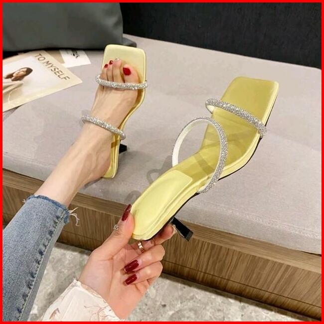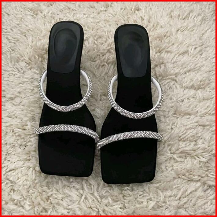 Sandal Pesta Wanita High Heels Hak Lancip 7 Cm Tali Jeli Permata Ar 02 Hitam Kasual Karet