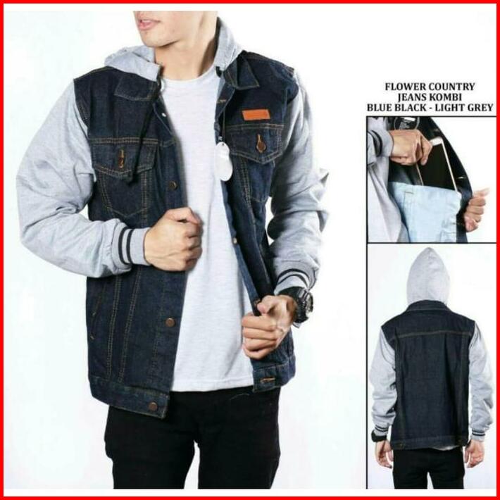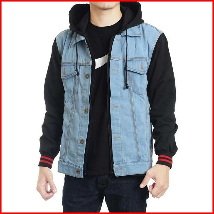 Jaket Jeans Denim Hoodie Boy Pria Jaket Jeans Denim Hoodie Pria Kombinasi Fleece Hanya Boleh Dicuci Dengan Tangan Xl