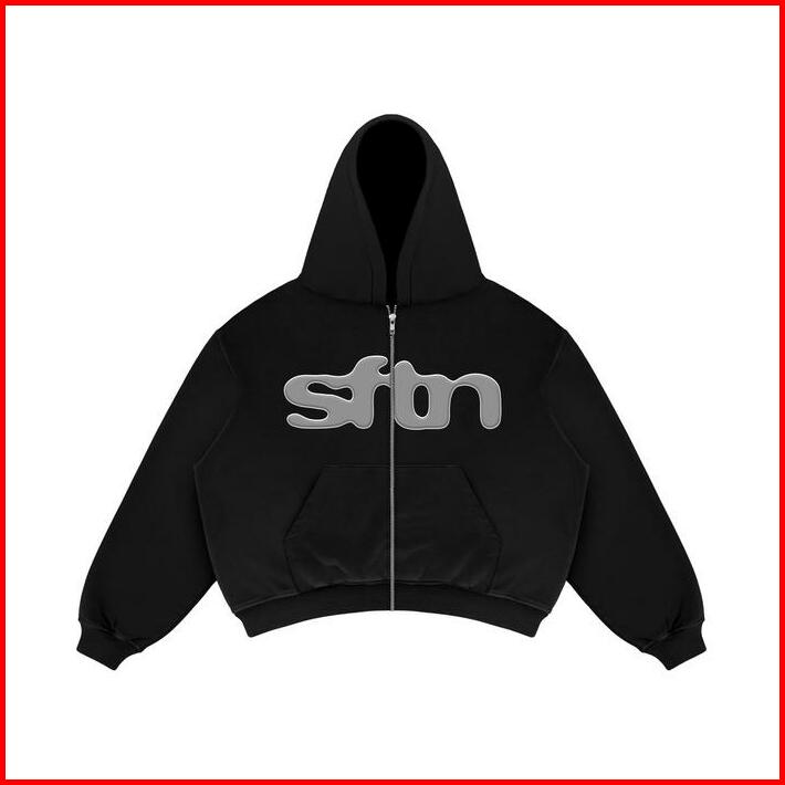 Satisfaction Hoodie Zipper Boxy 375gsm 8 Ball Puff Black