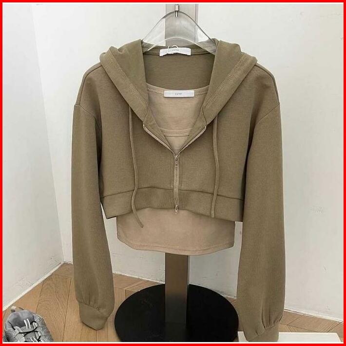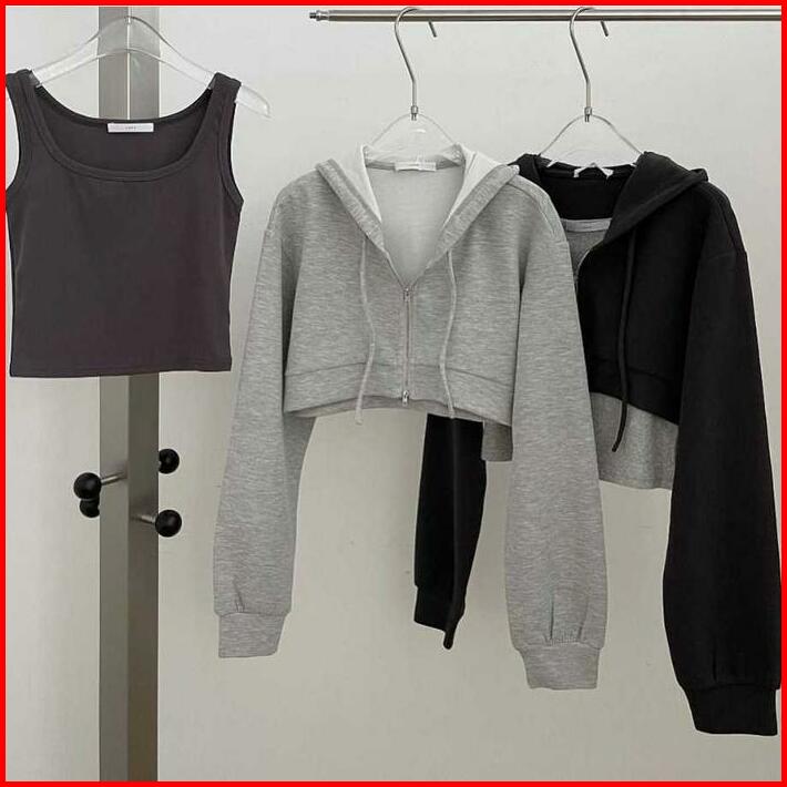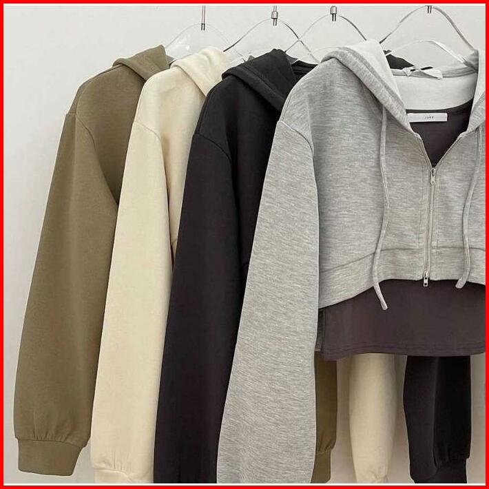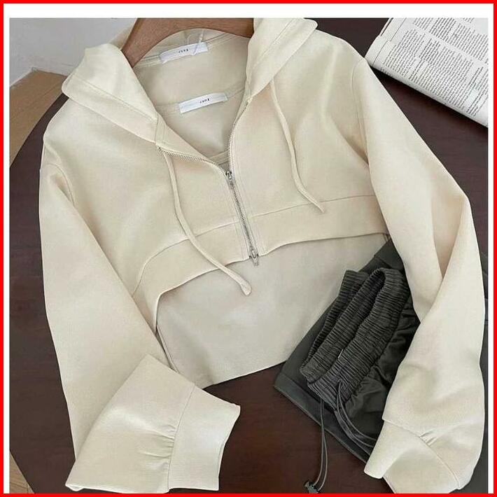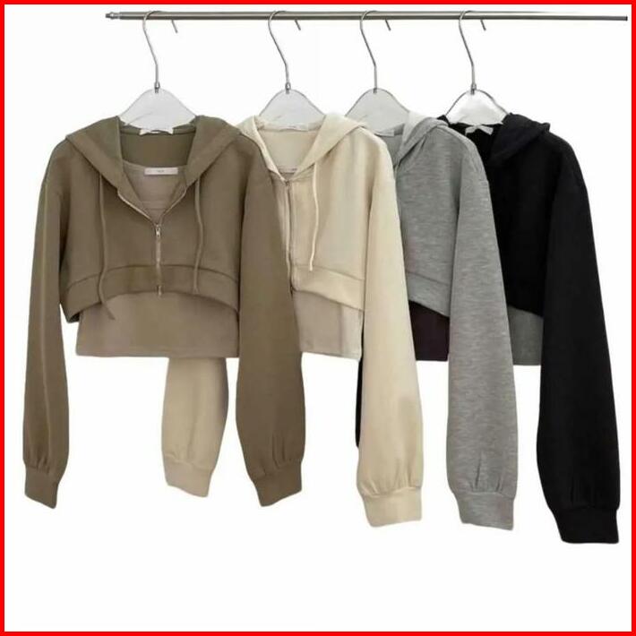 Croope Jaket Jessy Zipper Hoodie Sweater Wanita Crop Top