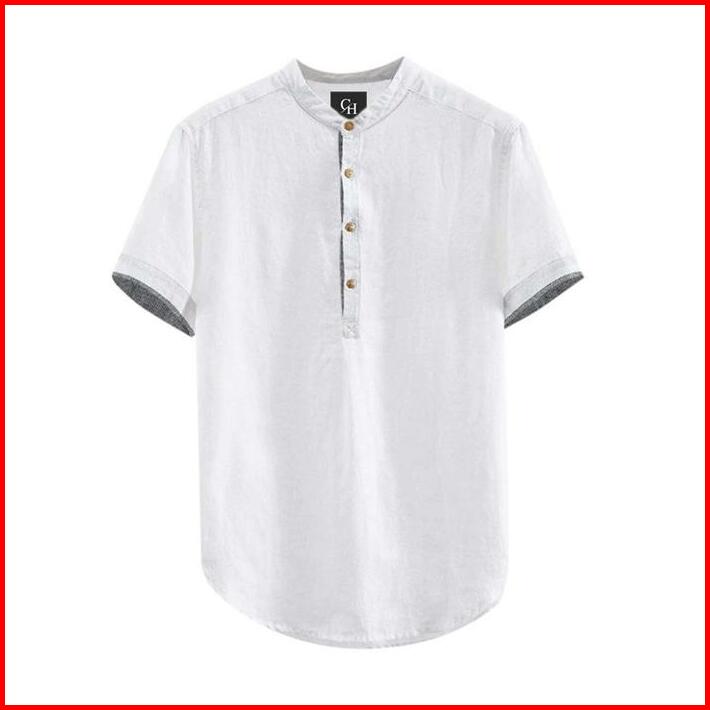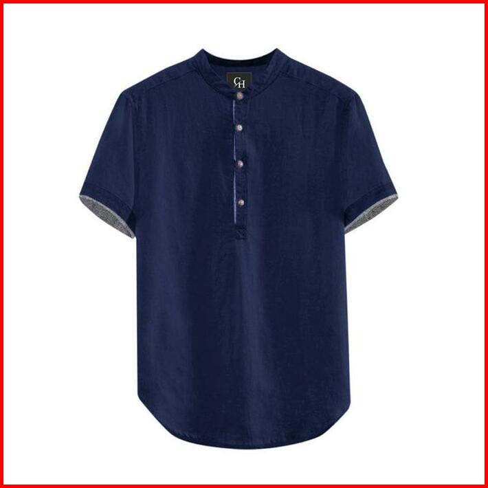 Baju Koko Pria Kurta Dewasa Tangan Pendek Hanafi Muslim Putih Hitam Army Biru