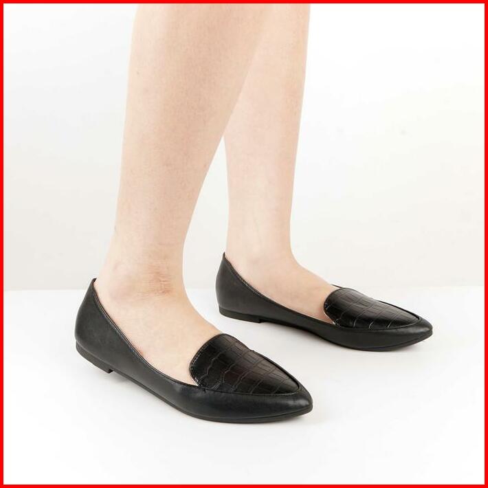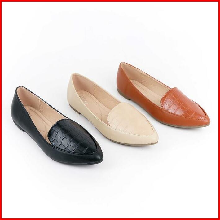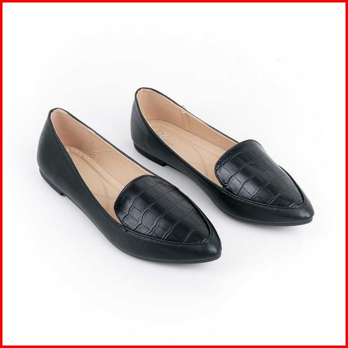 Blow Blnw 0053 Veina Croco Flats Shoes Sepatu Hitam Wanita Balet Women Shoes