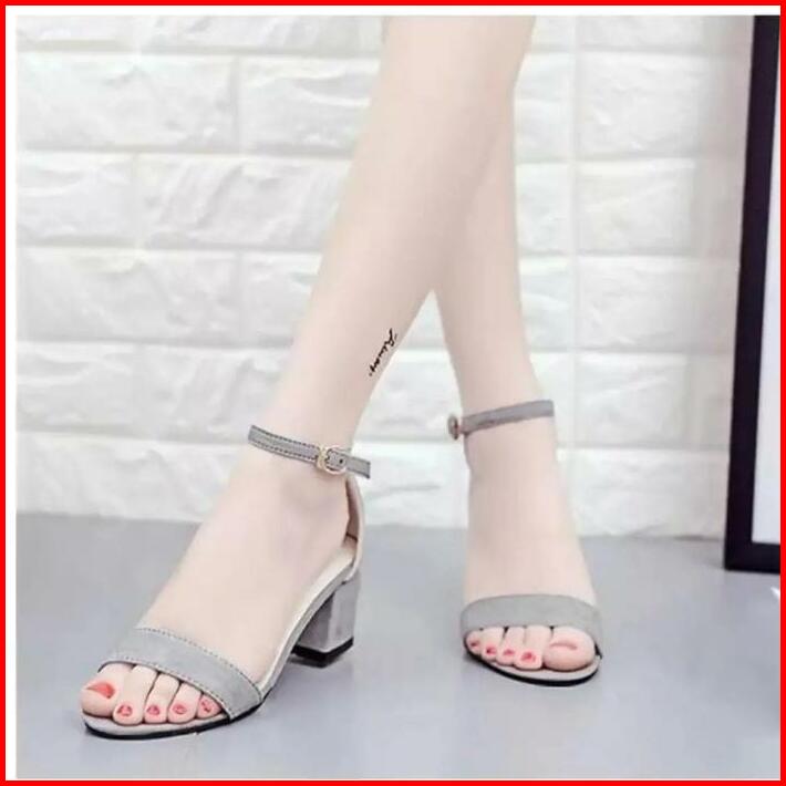 Sandal Wanita High Heels Berbahan Suade Halus Sol Karet Tidak Licin Hak 5 Cm Model Karet Sendal