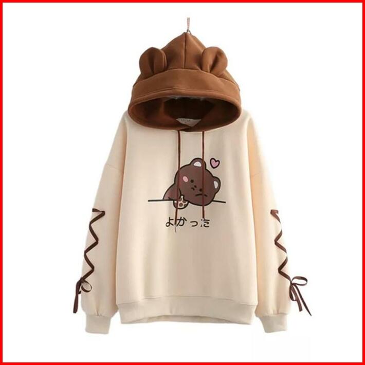 Cookies Love Bear Hoodie Cute Korea Wanita Fit Sweater