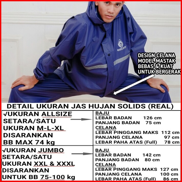 Jas Hujan Premium Solids Mantel Mantol Jumbo Original