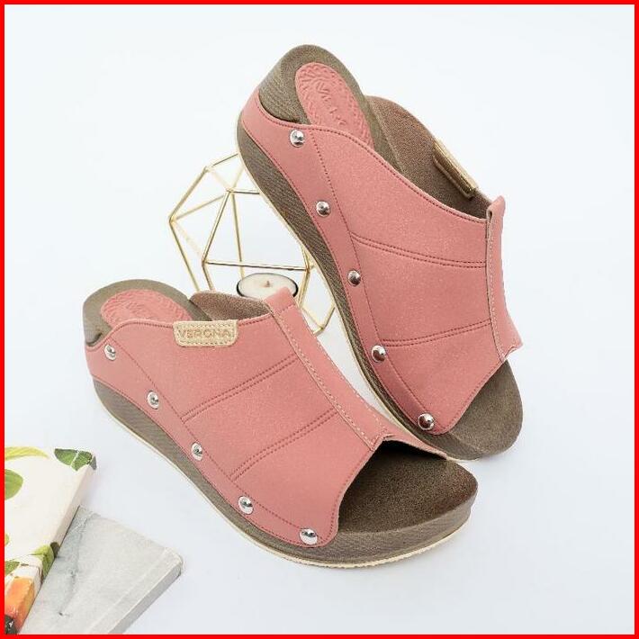 Sandal Wanita Wedges Sendal Perempuan Selop Slop Tinggi Hak Pesta Kondangan Kekinian Terbaru High Heels Ibu Ibu Cewek Ka