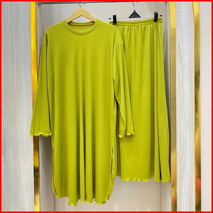 Denacollection Dya Setelan Rok Tunik Knit Busana Muslim Wanita Panjang Nyaman
