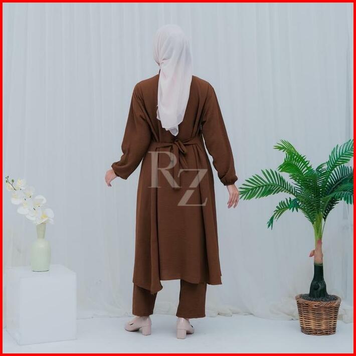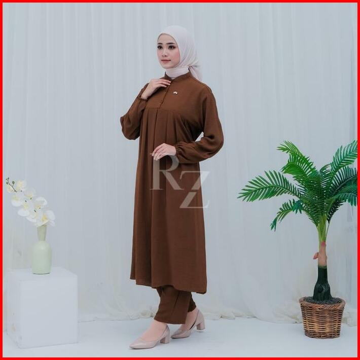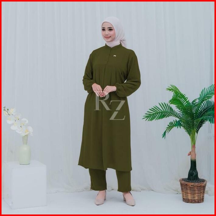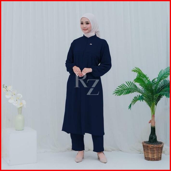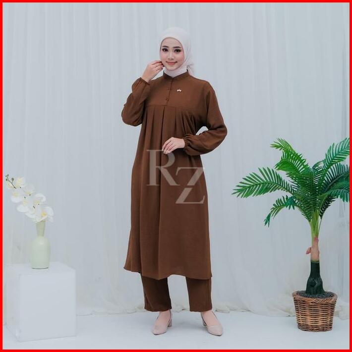 Setelan Tunik Wanita Panjang Bahan Crinkle Airflow Ld120cm Premium Baju Celana