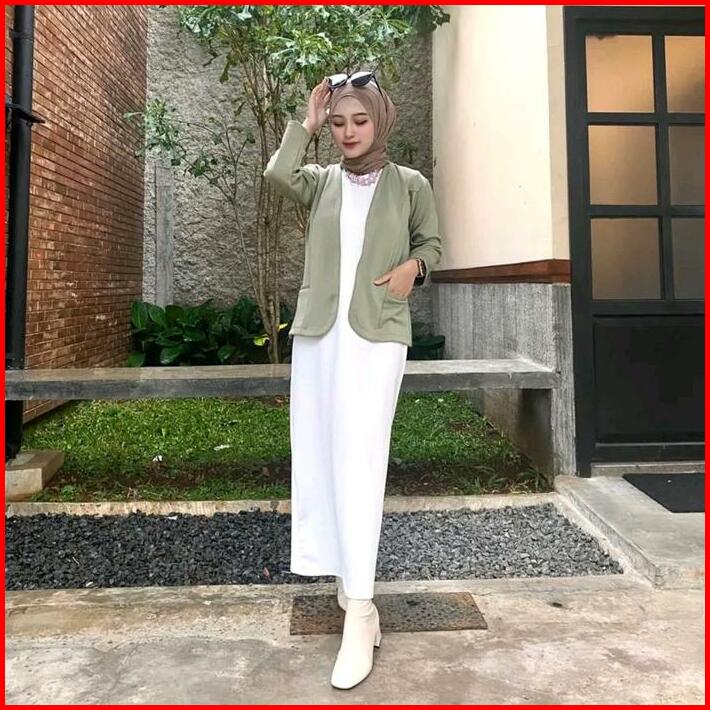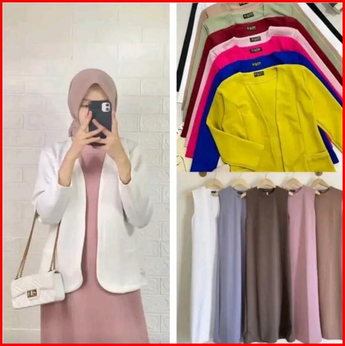 One Set Wanita Inner Knit Dan Blazer Scuba Baju Lebaran Wanita 2023 Gamis Dress Panjang Muslim Cewek Setelan Remaja Mela