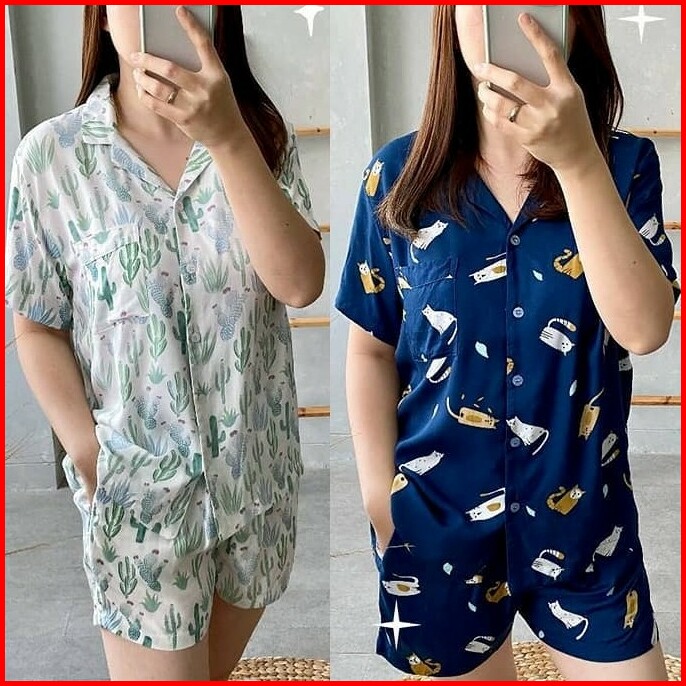 Baju Tidur Wanita Piyama Setelan Wanita Rayon Celana Pendek Jumbo Adem
