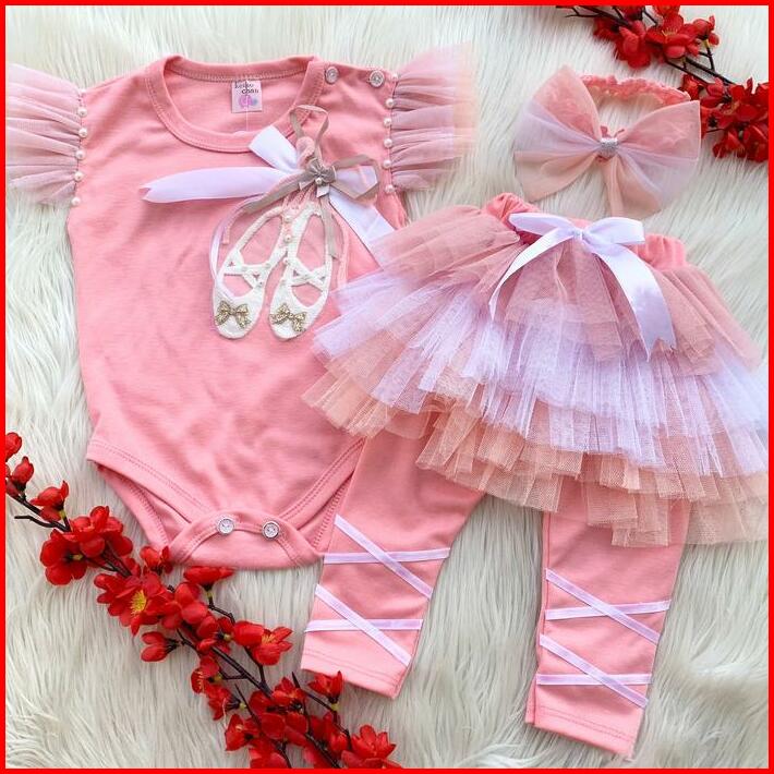 Baju Setelan Jumper Rok Tile Pom Sepatu Baby Girl Bestseller Fashion Anak Bayi Cewek Perempuan Murah -dlp