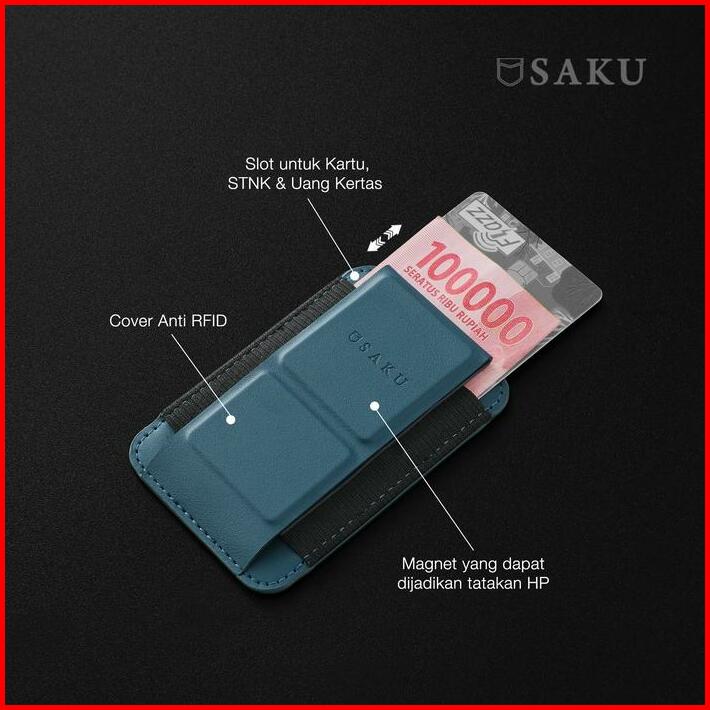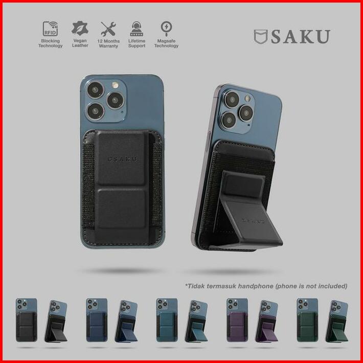 Saku Dompet Kartu Kulit Magsafe Iphone Android Leather Wallet Stand Cardholder Pria Wanita Unisex