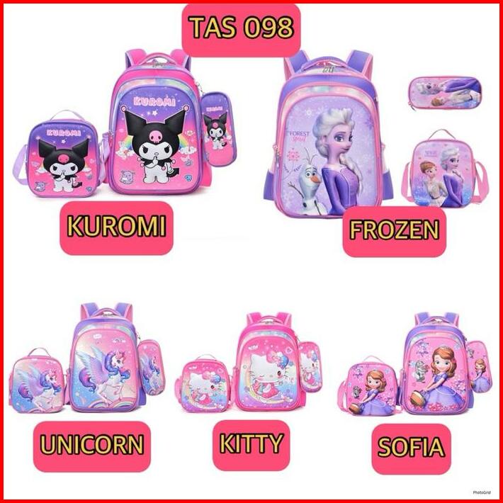 Tas 098 Tas Ransel Sekolah 3 In 1 Tas Sekolah Anak Cewek Tas Import