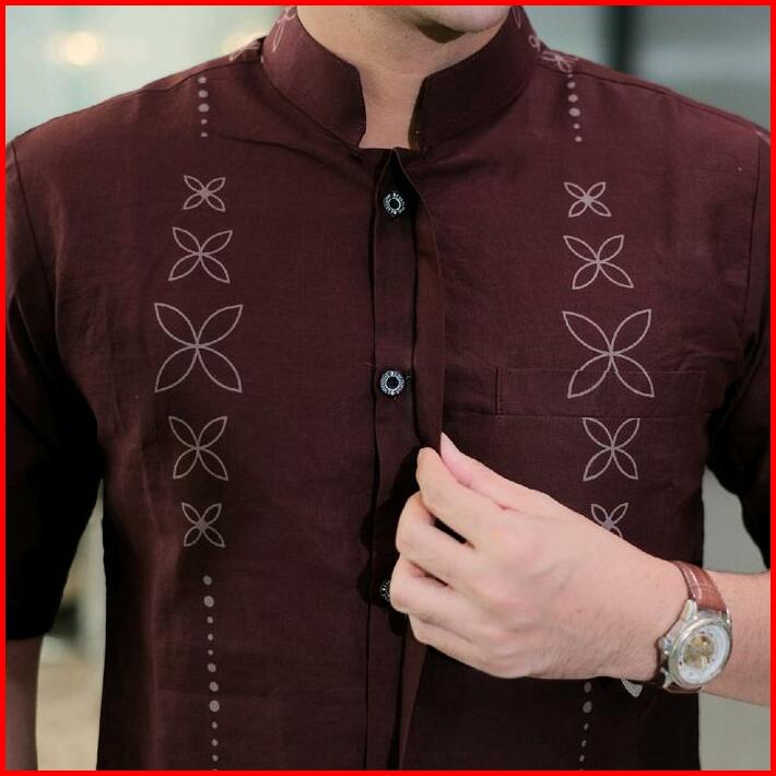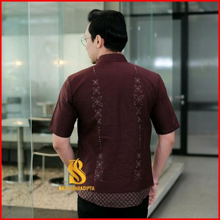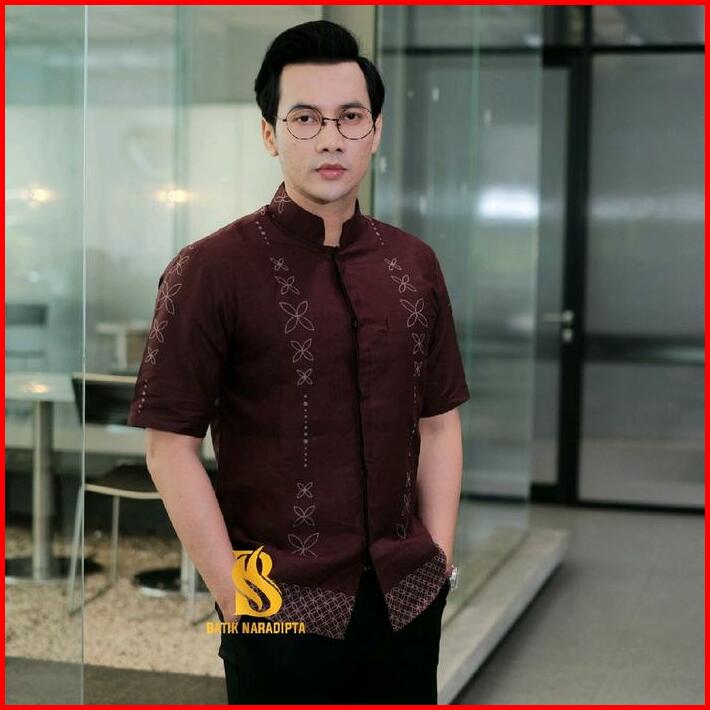 Pradana Koko Baju Motif Batik Naradipta Slimfit Katun Prima Premium Lapis Full Furing Adem Nyaman Lengan Pendek Panjang