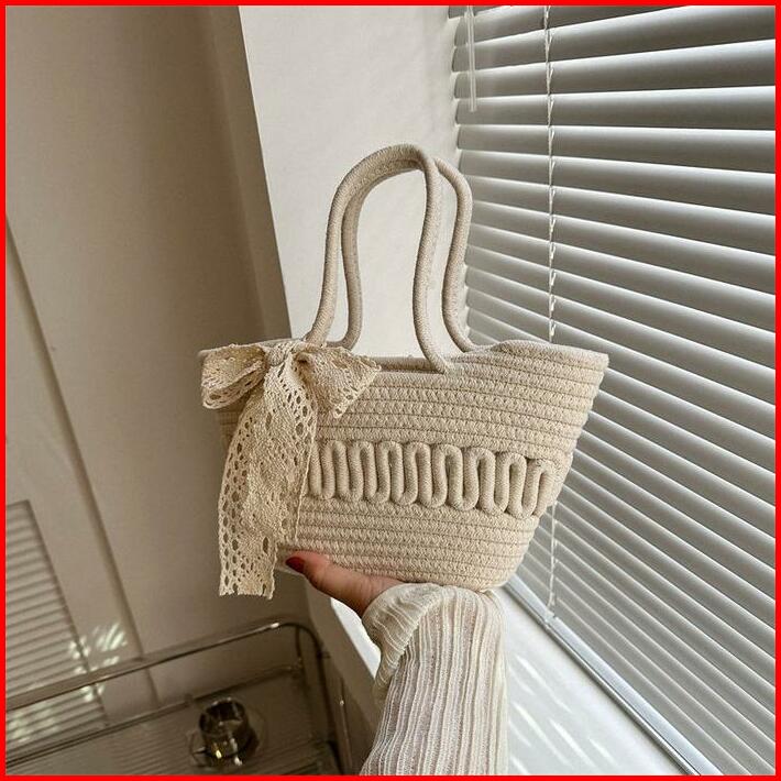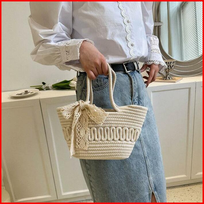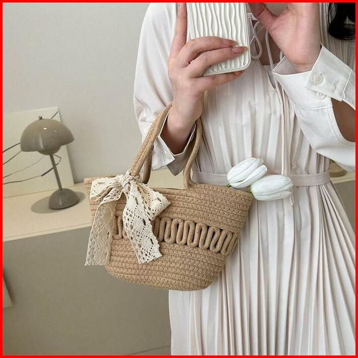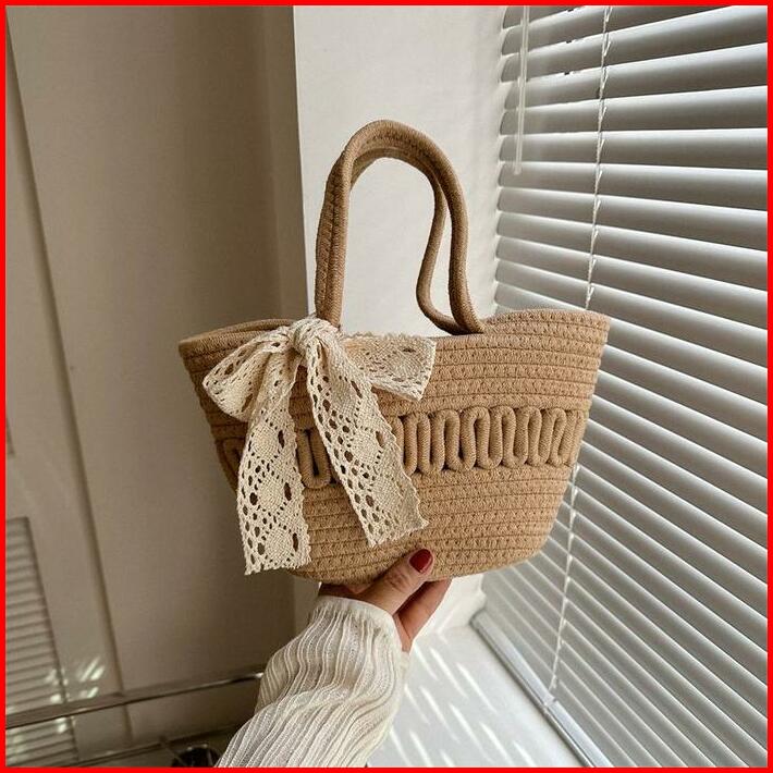 Tas Wanita Woven Small Satchel Bag Women Straw Bag Seaside Vacation Tote