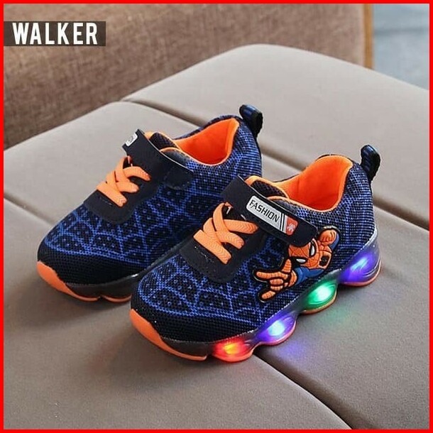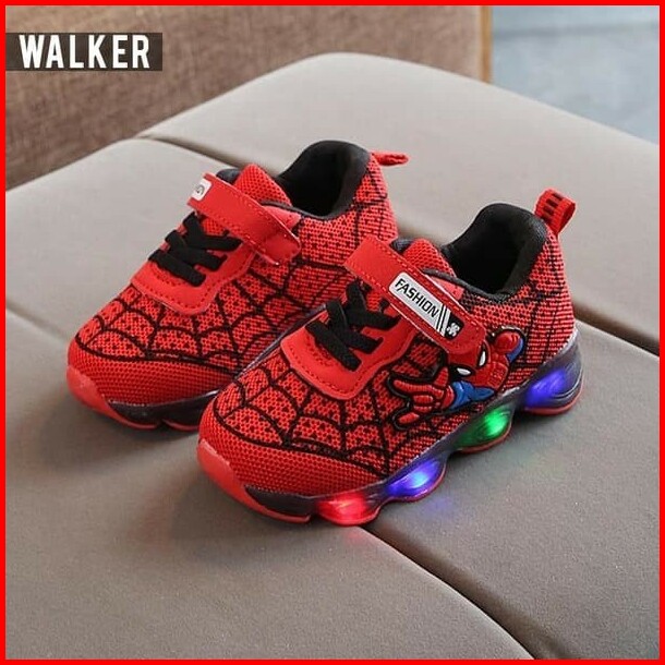Lkm168 Sepatu Sport Spiderman Anak Laki-laki Casual Bayi Lampu Led