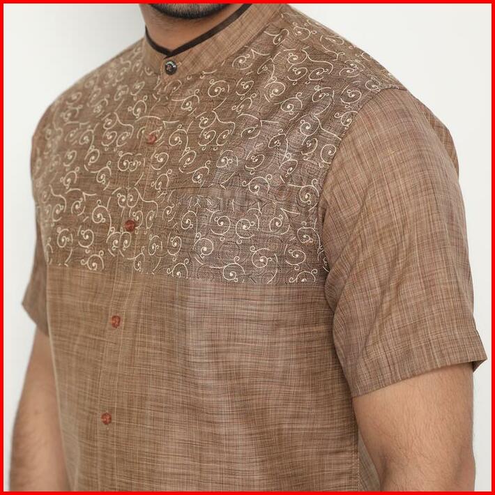 Limited Edition Casella Baju Koko Pria Lengan Pendek Baju Koko Hussein Horizontal Pattern Muslim Dewasa