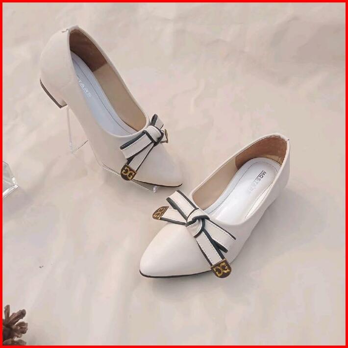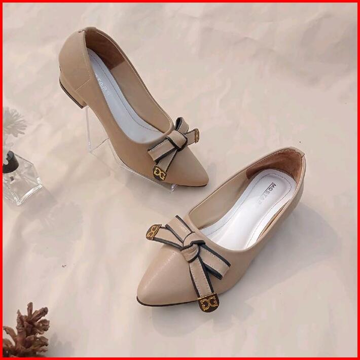 Sepatu Flat Shoes Slip On Wanita Kantoran Pansus Pita Gg Hak 3cm Kasual Hitam