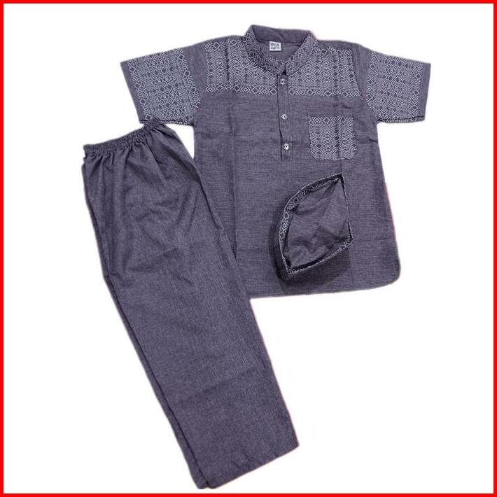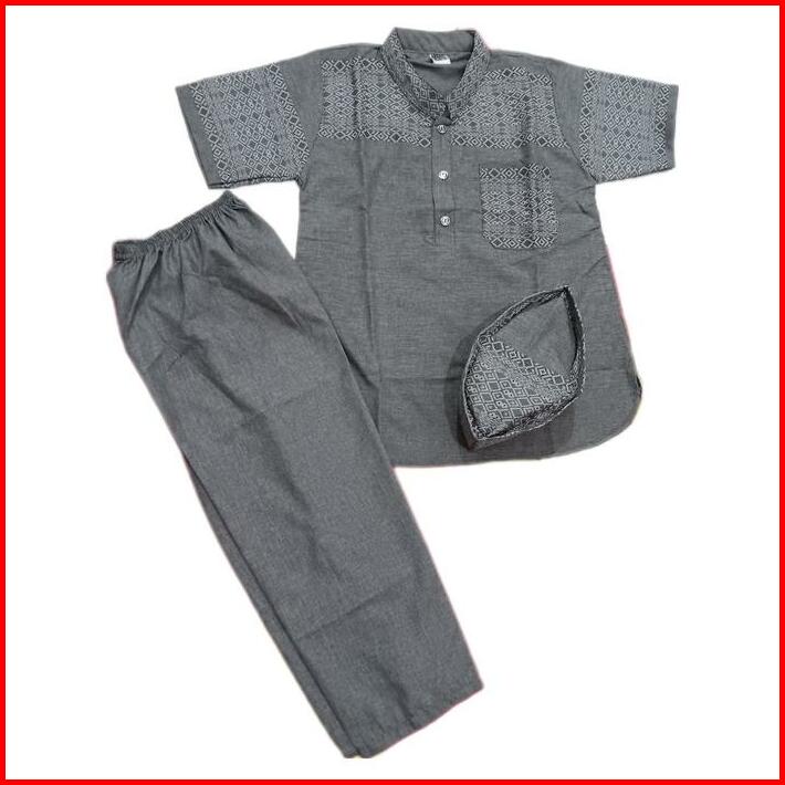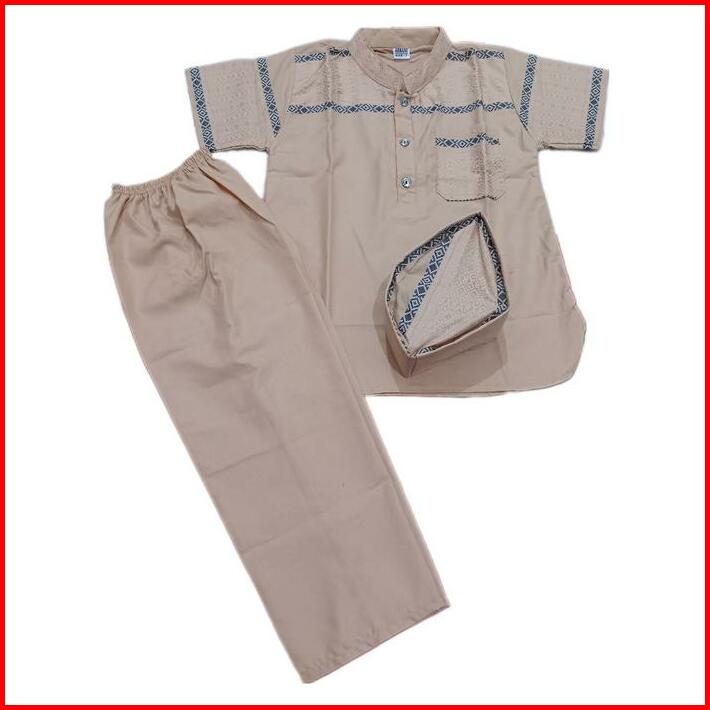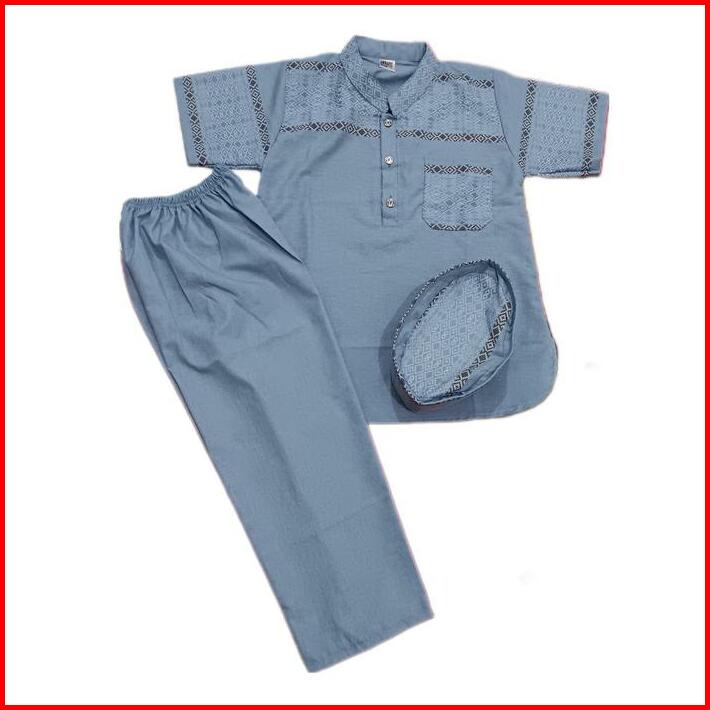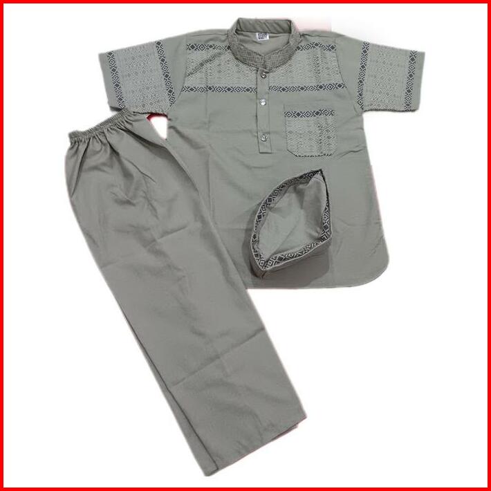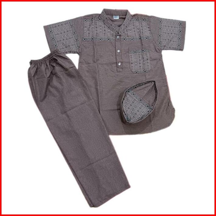 Baju Koko Anak Laki Terbaru Usia 4-12 Tahun Bahan Katun Madinah Bordir Motif Songket Halus Setelan Muslim Celana Panjang