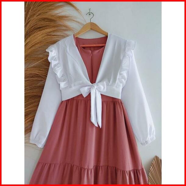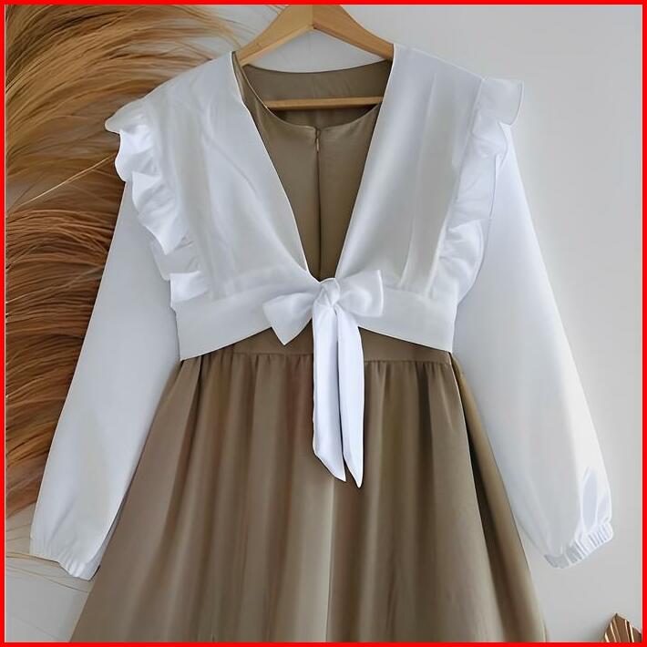 Gamis Anak Wanita Remaja Shakila Dress Set 2in1 Setelan Pakaian Busana Muslim Outer Dan Inner Terpisah Elegant 12-13 Tah