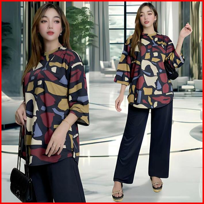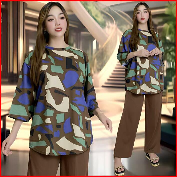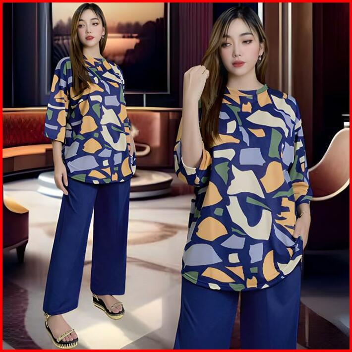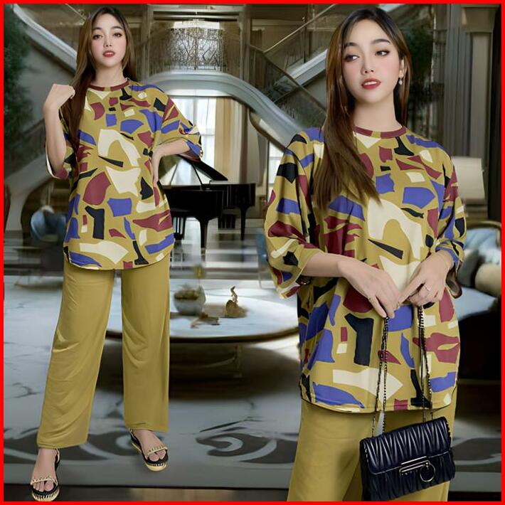 Aziza Pakaian Setelan Wanita Ld 120 Celana Lurus Kantong Kiri Kanan Dan Atasan Oval Belahan Kiri Dan Kanan Oversize Wani