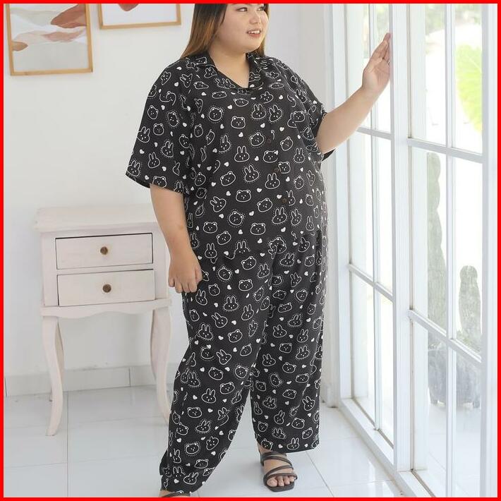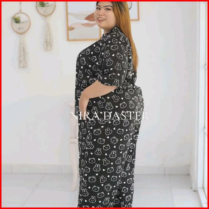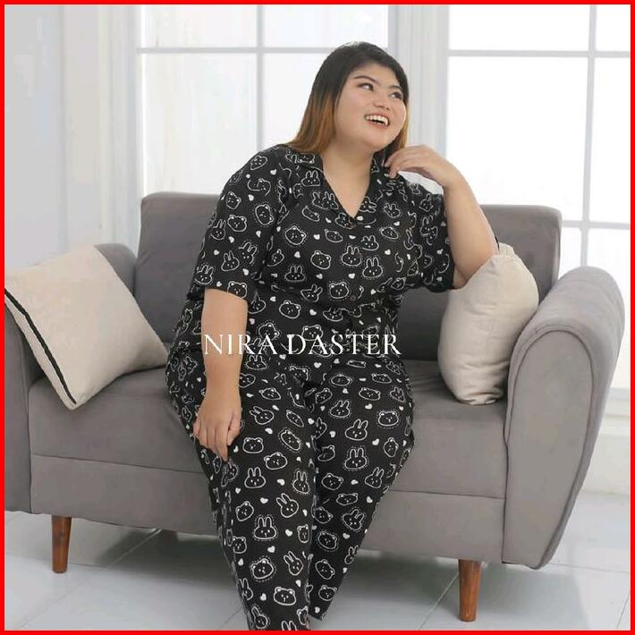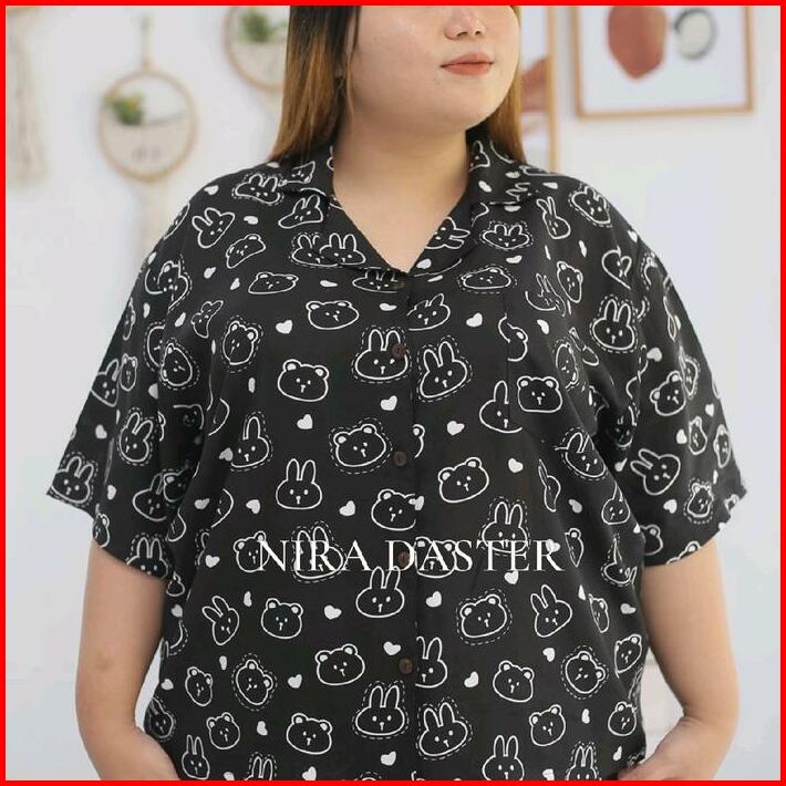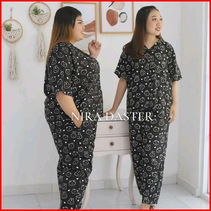 Nira Daster Ld 130 140 160 Piyama Premium Jumbo One Set Kancing Rayon Motif Setelan Wanita Lengan Pendek Kerah Rever Bus