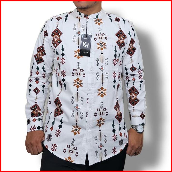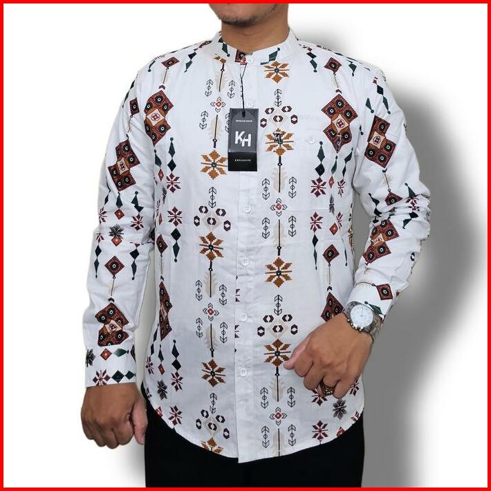Kemko Kh Kemeja Koko Dewasa Pria Lengan Panjang Linen Songket Terbaru 2024 Baju Kain Katun Motif