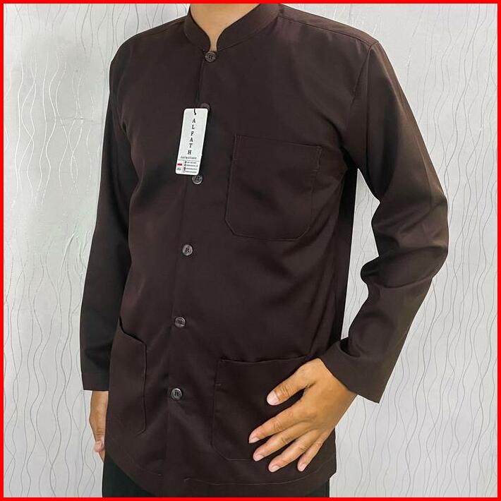 Alfath-baju Koko Haibah Ammu Santri Habaib Saku Depan Muslim Pria Dewasa Polos Lengan Panjang Bahan Kain Katun Toyobo Co