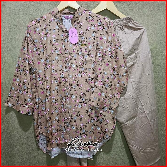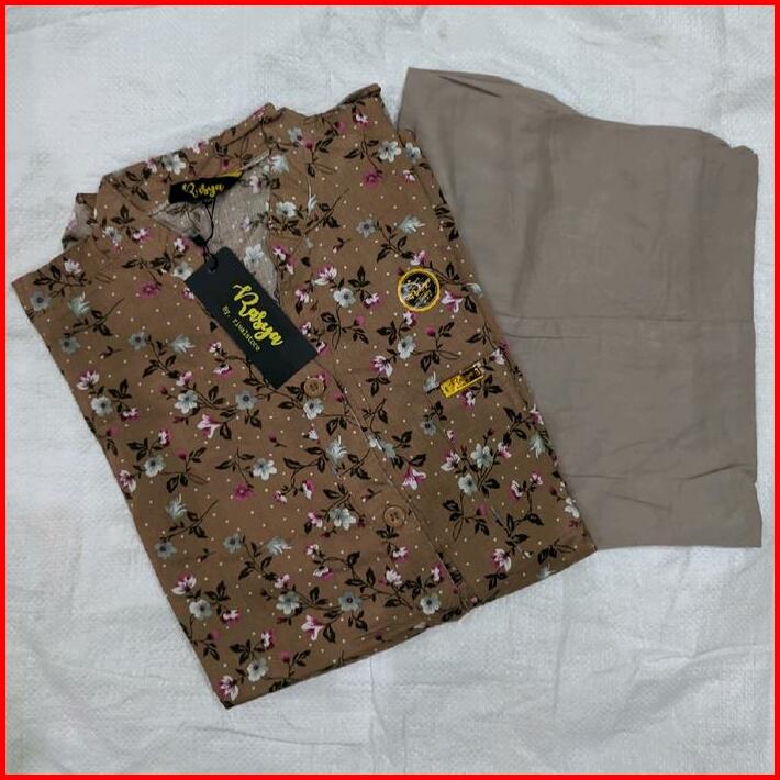 Setelan Bunga Kombinasi Oneset Rayon Twill Premium Setcel Wanita Viral Terbaru Baju Celana Nyaman One Set Rayon Lengan P