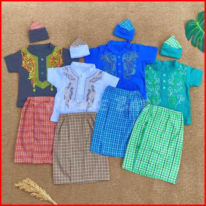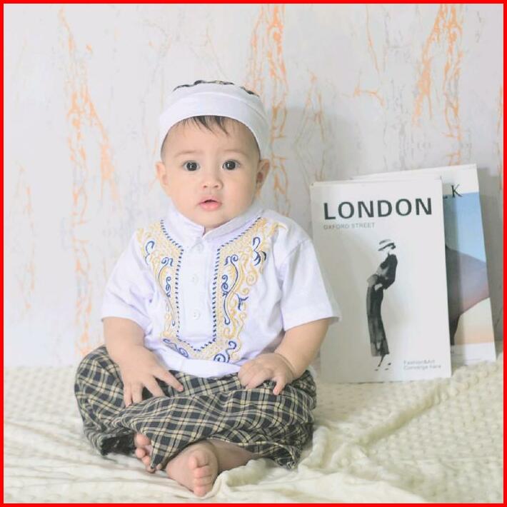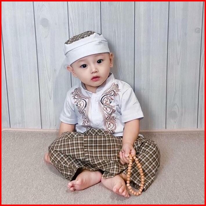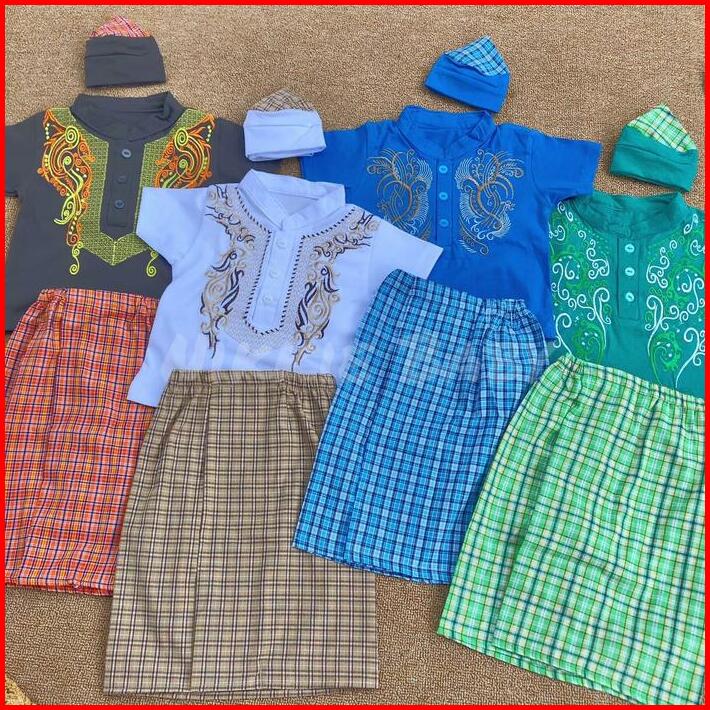 Sarkoci Sarung Koko Peci Bayi Baru Lahir Baju Muslim Combed Katun Bordir Lebaran Anak Turki Cowok