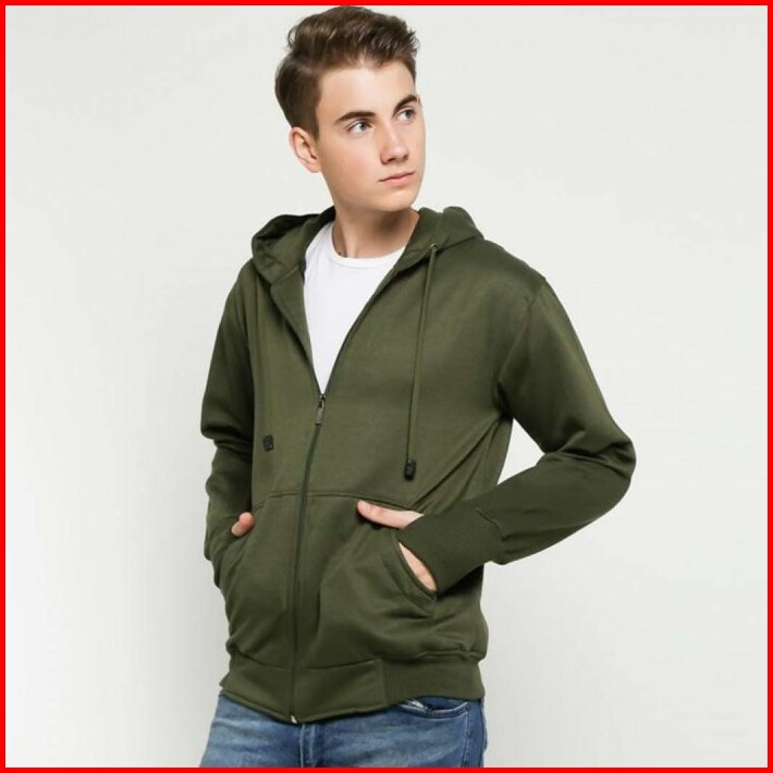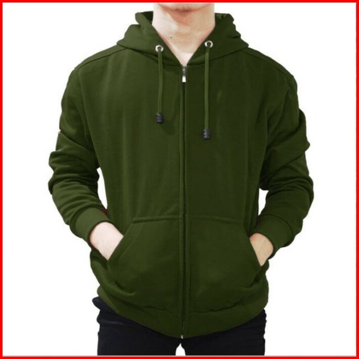 Jaket Hoodie Zipper Hijau Army