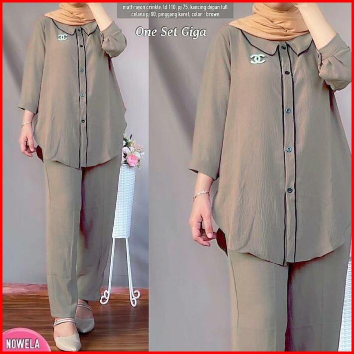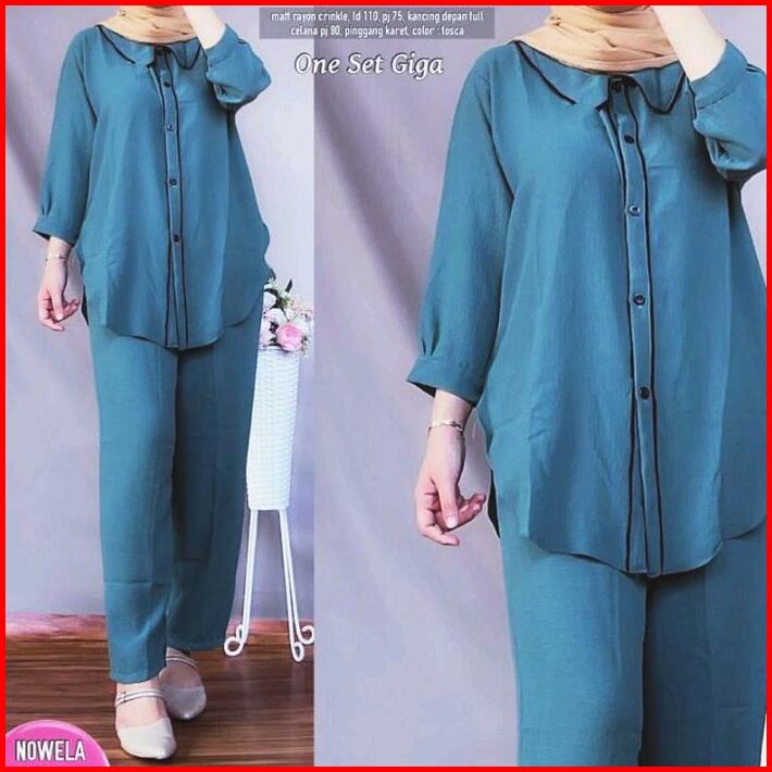 Giga Set Setelan Crinkle Baju Viral Setelan Wanita Terbaru Viral Baju Muslim Baju Setelan Airflow Panjang Celana
