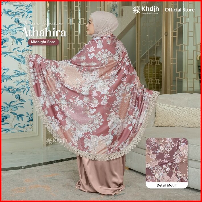 Khadijahlabel Mukena Dewasa Jumbo Premium Signature Silk Renda Mewah Terbaru Athahira Edisi Lebaran