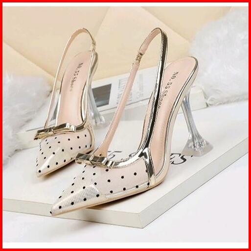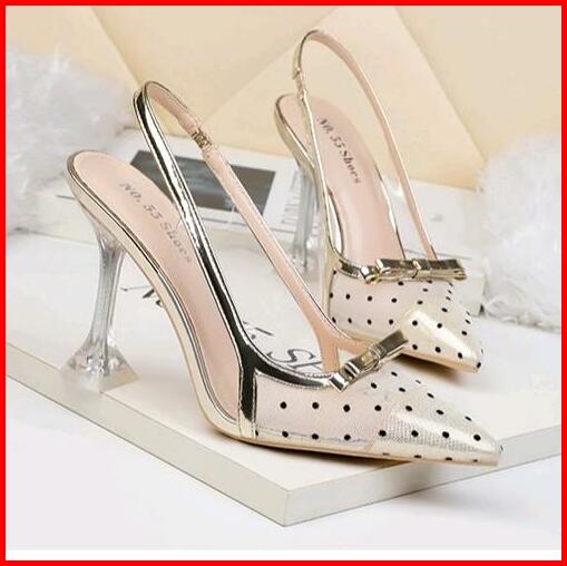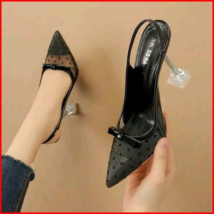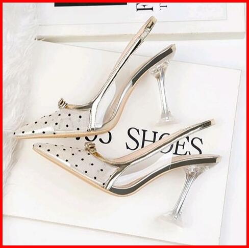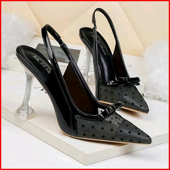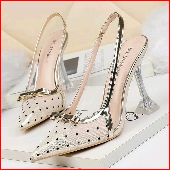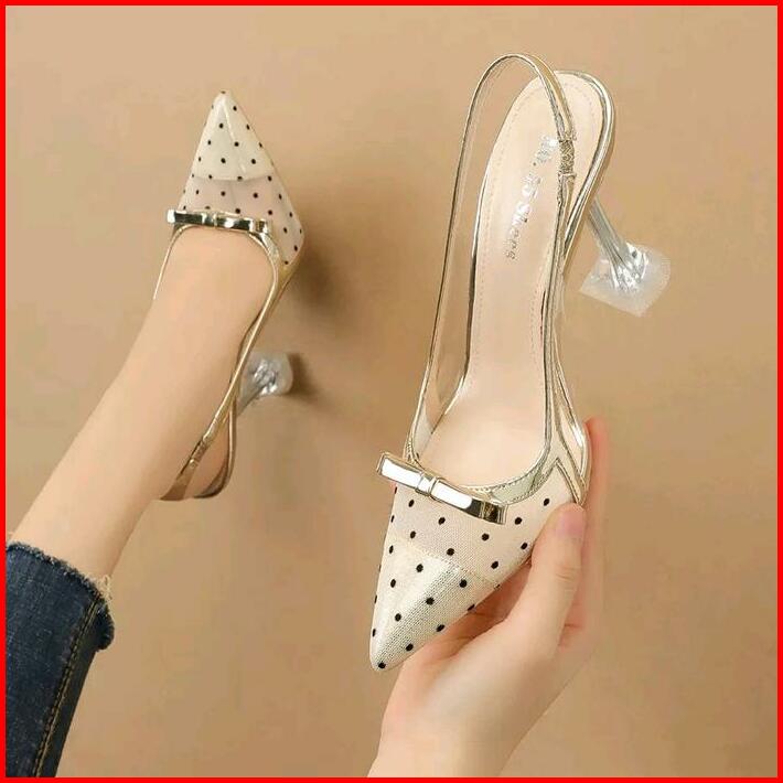 Rindhi 01 High Heels Sepatu Sandal Pulkadot Hak Kaca Tinggi 7cm Stiletto Sendal Wanita