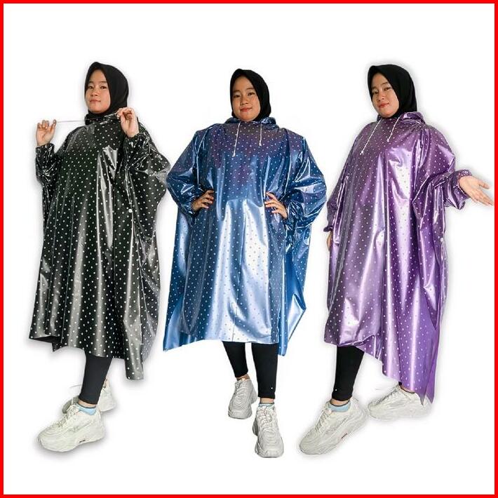 Jas Hujan Kelelawar Polkadot Lengan Ponco Pria Wanita Dewasa Pvc