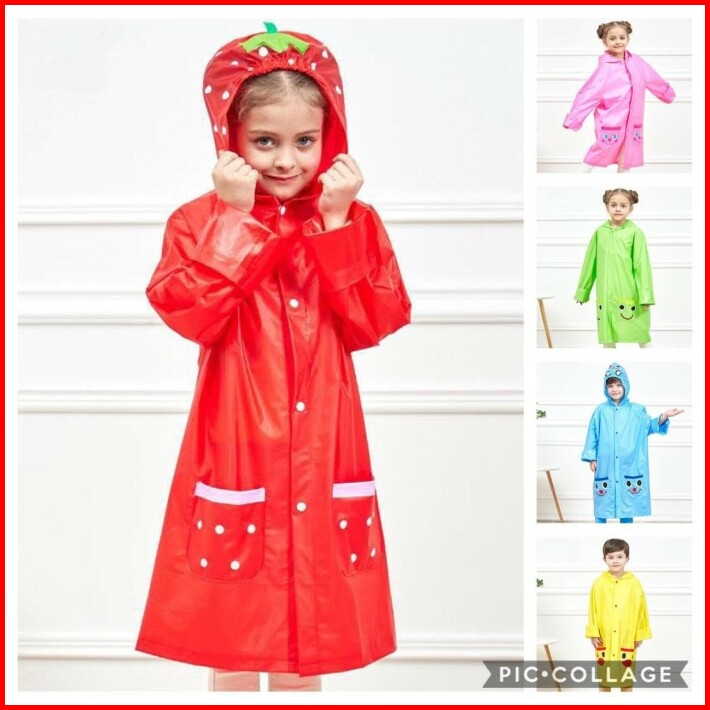 Jas Hujan Anak Mantel Animal Lucu Warna Strawberry